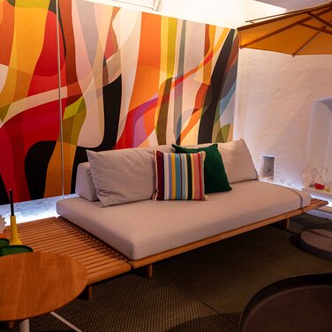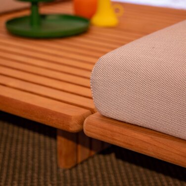Das Outdoor-Sofa „DECK“ von Gloster überzeugt mit hochwertiger Verarbeitung und elegantem Design für Terrasse und Garten. Der edle, hellgraue Stoff harmoniert perfekt mit der robusten Teakbasis, die mit der Zeit auf natürliche Weise vergraut - ein charaktervolles Materialmerkmal, das den einzigartigen Charme des Sofas unterstreicht. Mit seiner großzügigen, einladenden Form bietet das Designer-Sofa höchsten Komfort und wird zum stilvollen Mittelpunkt jeder Outdoor-Lounge.