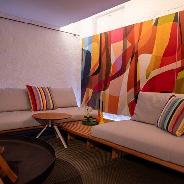 Maße Sofa ohne Couchtisch als Trennelement: L 386 x H 99 x T 223 cm