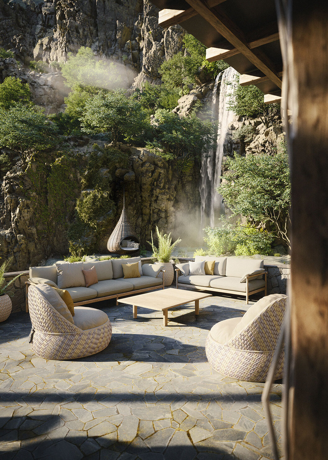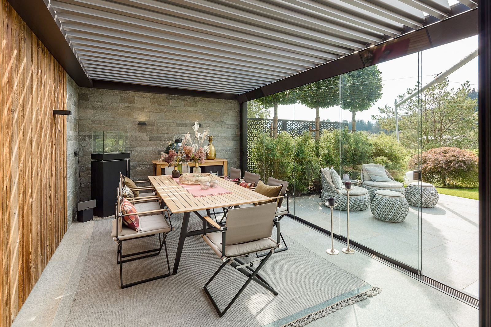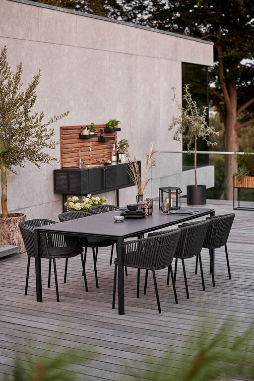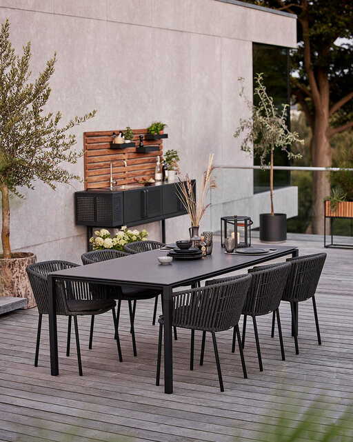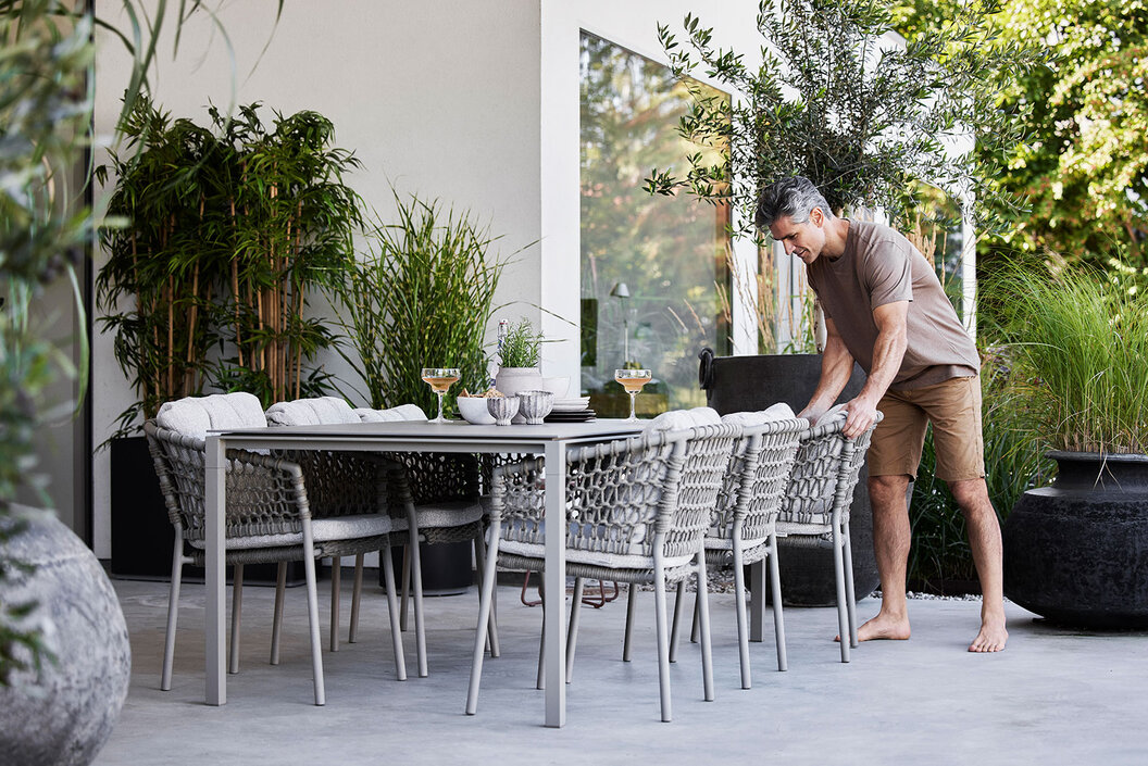 Organische Formen und weiche Proportionen dominieren und ersetzen die strengen Linien vergangener Jahre. Panta rhei – alles fließt, ist in Bewegung und spiegelt die Dynamik der Natur perfekt wider. Geschwungene Silhouetten und feine Rundungen machen die Terrasse zum Ruhepol, zum entspannten Rückzugsort voller Muße und Entschleunigung.