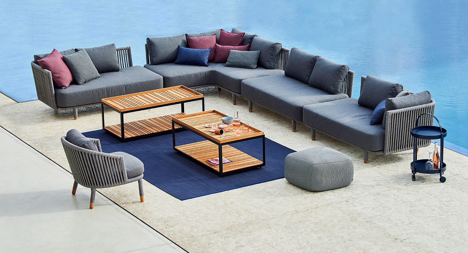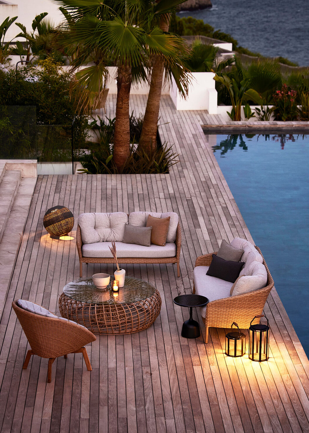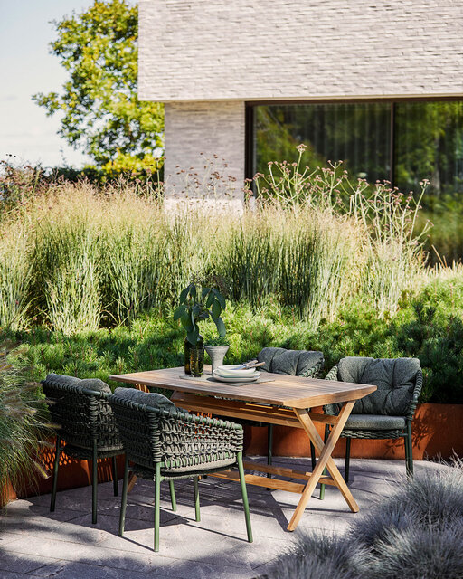 Teak bleibt das Holz der Wahl für witterungsbeständiges Design, und Rope, Keramik und recycelte Hochleistungsstoffe sorgen für fühlbare Qualität mit Umweltbewusstsein.