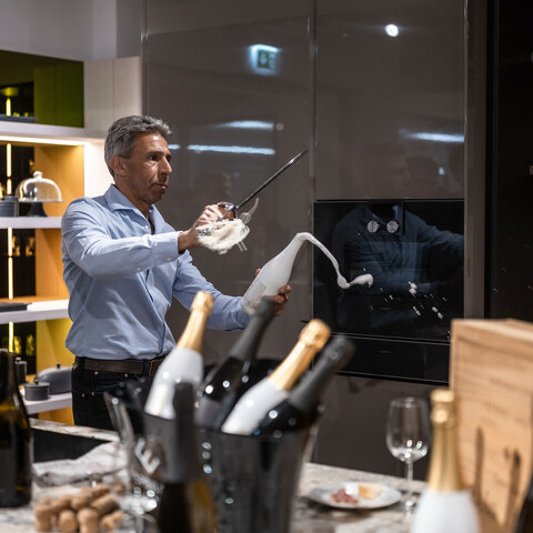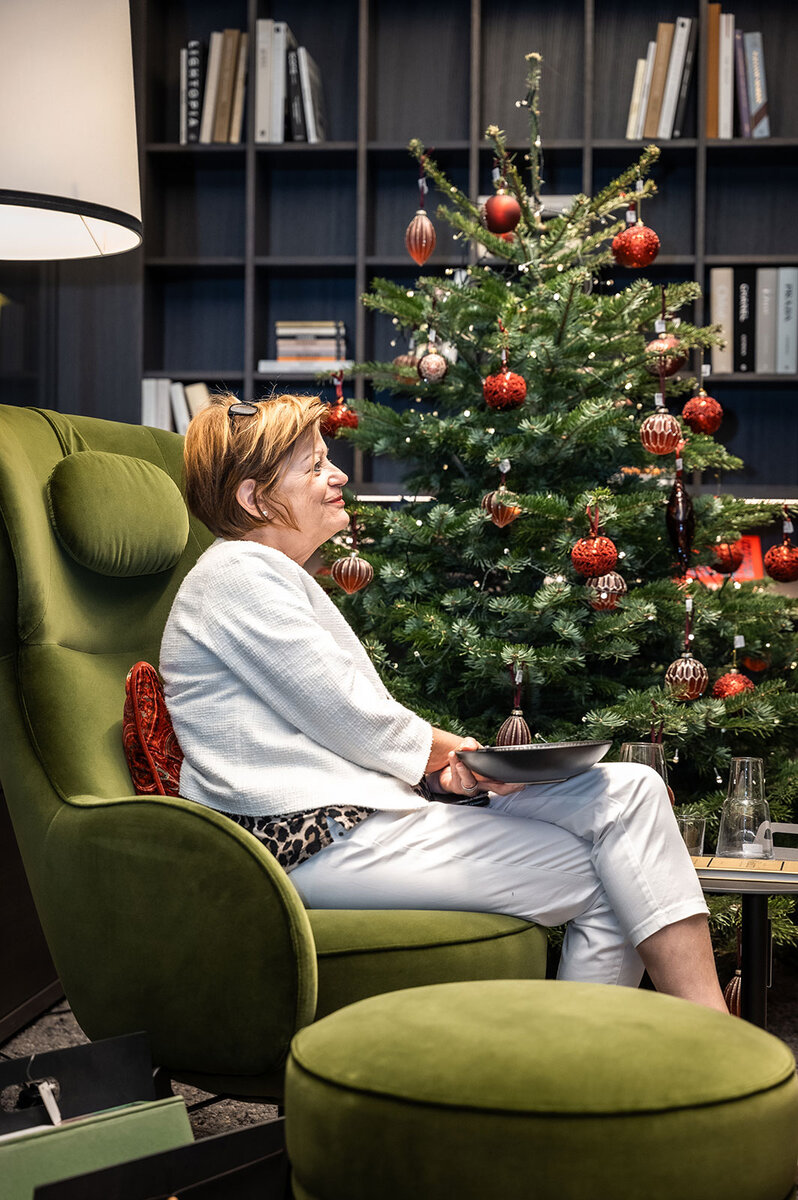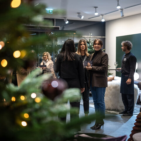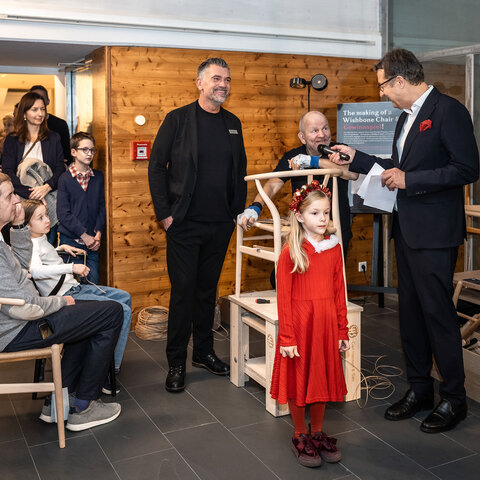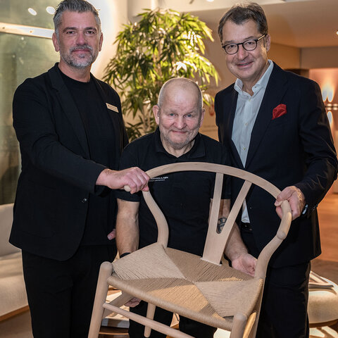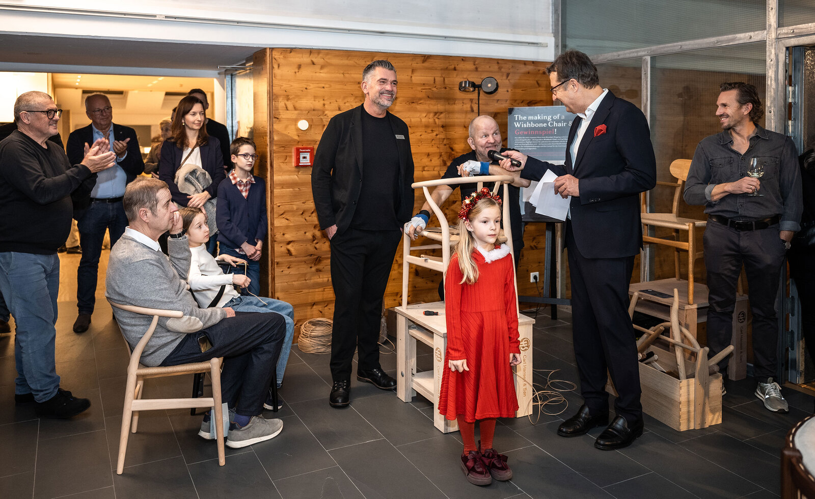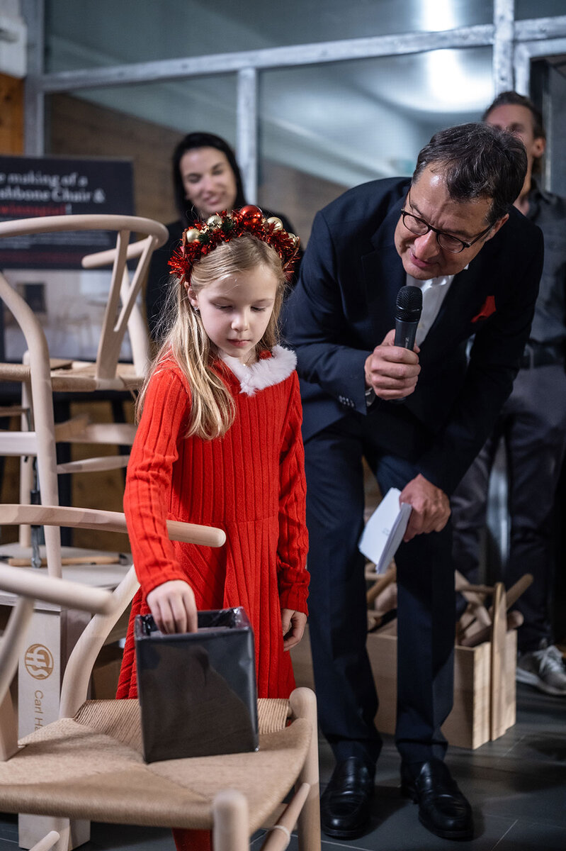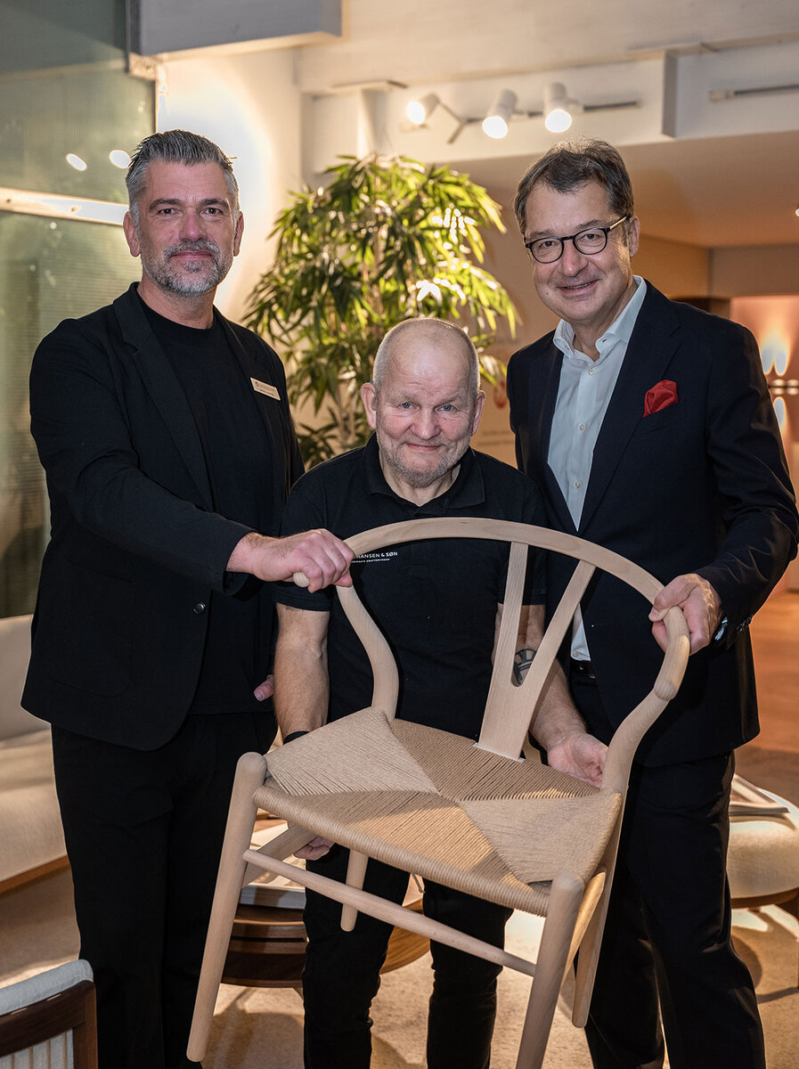Was uns besonders freut: dass wir es immer noch schaffen zu überraschen. In diesem Jahr sorgte der Flechtmeister Benni Larson von dem dänischen Unternehmen Carl Hansen & Søn für unerwartete Momente. Live zu beobachten, wie ein Exemplar des Kult-Stuhls „CH24 Wishbone Chair“ entsteht, und dabei sogar selbst mit Hand anzulegen, war für unsere Gäste ein echtes Erlebnis an diesem ohnehin ereignisreichen Abend.