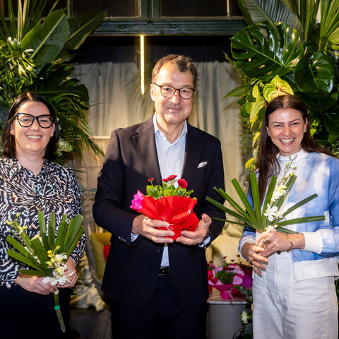 Dort sorgte Haubenkoch Thomas Grander in bewährter Manier für kleine Kunstwerke am Teller, die bei erfrischenden Cocktails und lässigen Sounds auf dem sonnigen Rooftop die Stimmung noch weiter hoben – und Starflorist Martin Keiler bezauberte mit seiner einmaligen Blumensteckkunst und animierte zum Mitmachen: Traumhafte Selfmade-Arrangements begleiteten die Gäste nach einem wunderbaren Tag nach Hause!